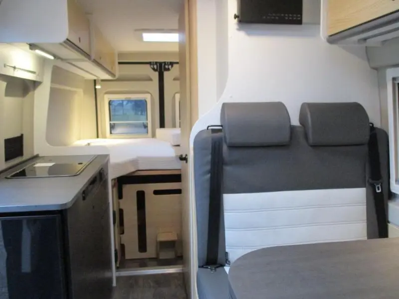 Voorts heeft deze camper veel opbergruimte voor kleding door de vele kastjes en voor wat grotere artikelen de ruimte onder het bed.